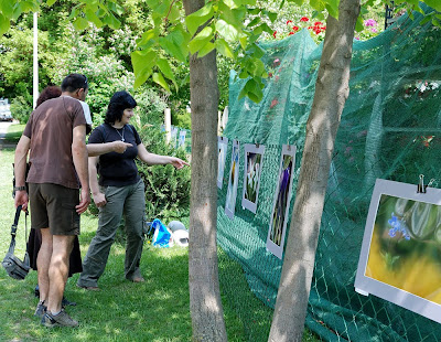 A "Növényvarázs" című tárlatunk fotóit a Virágvásáron a kerítésre függesztettük ki egy forgalmasabb útvonal mentén. Reggeliben már szorgosan munkálkodott kis csapatunk: